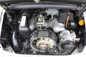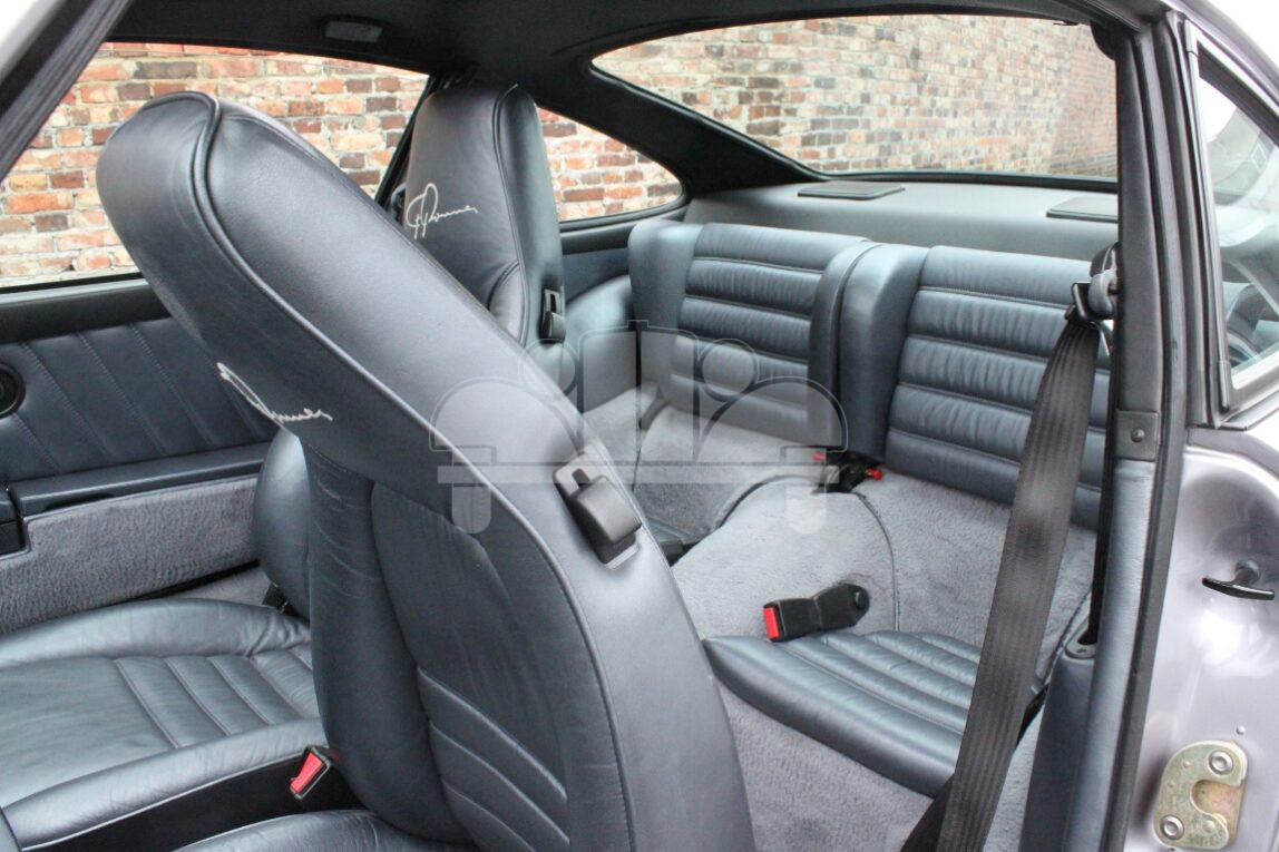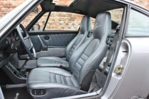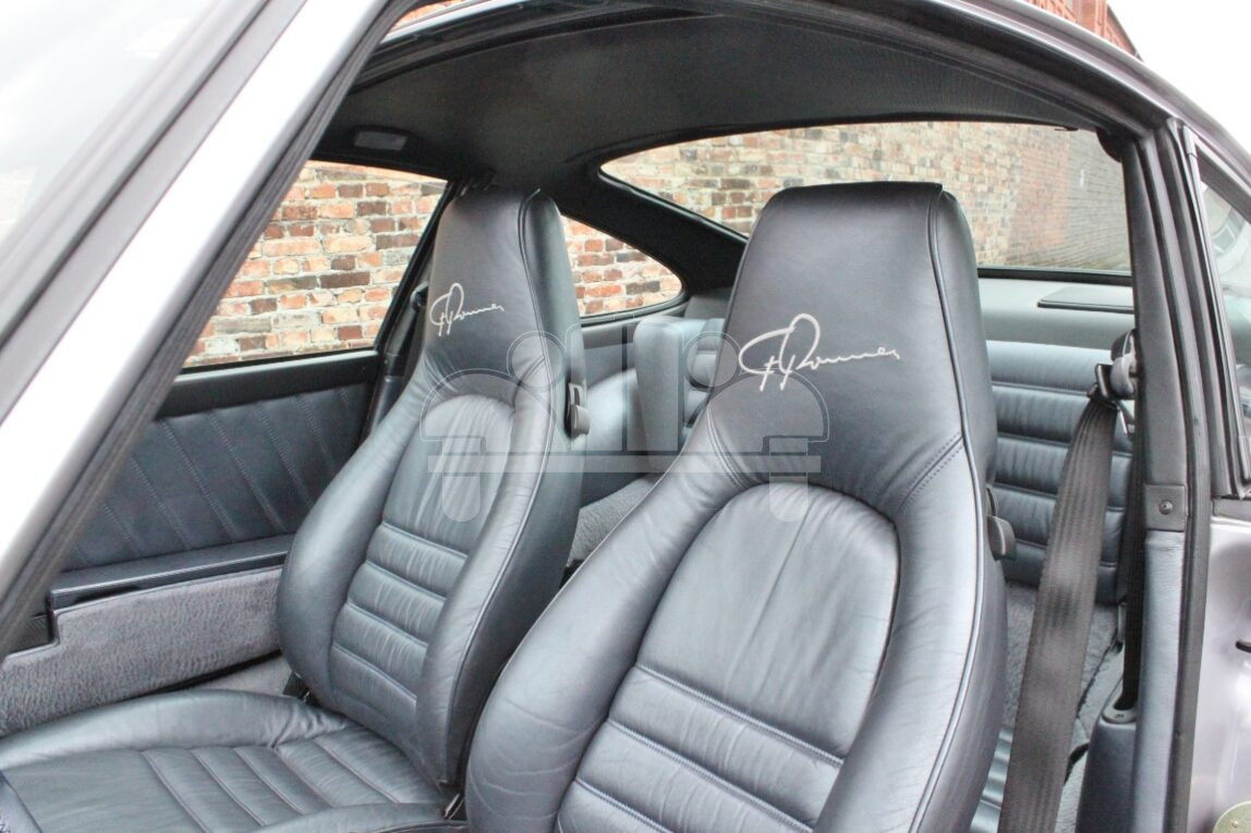 Die Innenausstattung ist gekennzeichnet durch Leder in der Farbe silbermetallic, Kopfstützen mit eingesticktem „F. Porsche“ Signet. Teppiche und Gepäckraum sind in Seidenvelours gehalten, auf dem Handschuhkastendeckel gibt es eine Plakette, der Schalthebel ist verkürzt (Short Shifter).