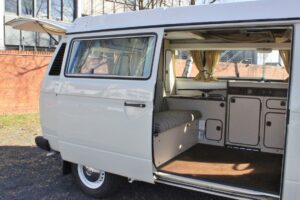 Ein Westfalia T 3 Campingbus in komplett überholtem Zustand, der die Ausstrahlung eines sehr gepflegtem, unfallfreien Nichtraucher-Jahreswagen hat.